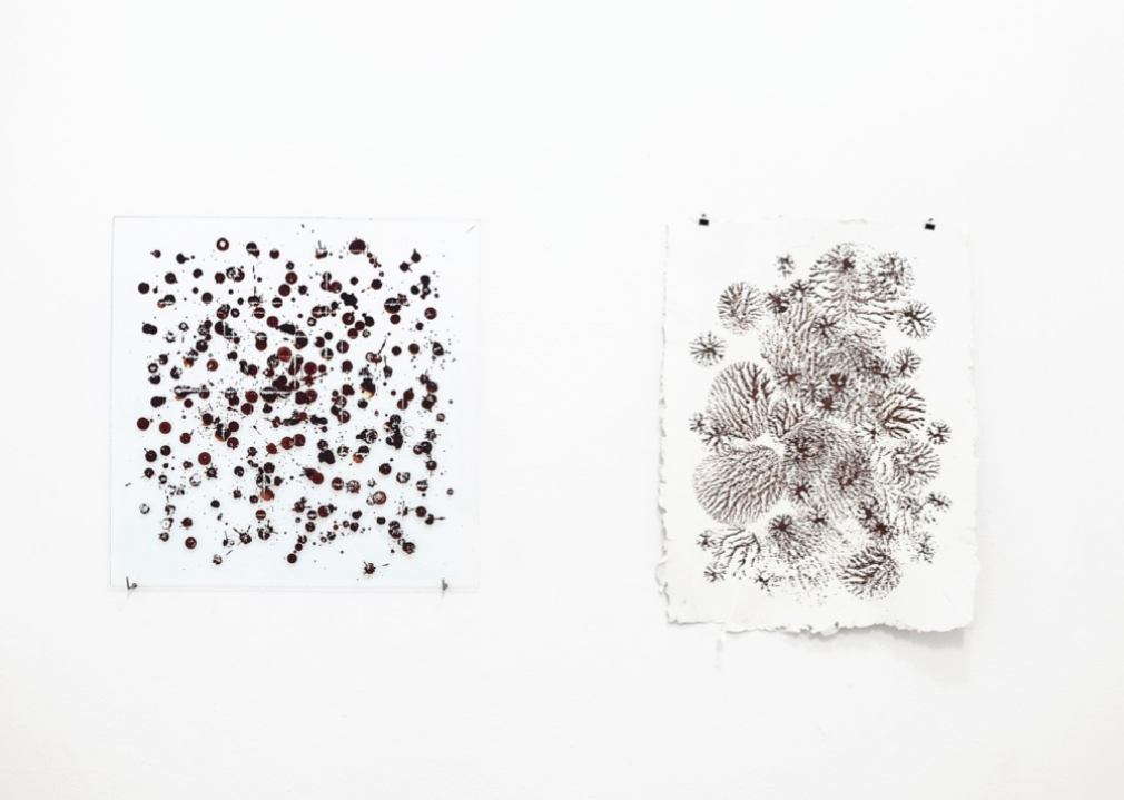 Flujos esperados, ansiados, antes de la última pérdida, antes del duelo de la desaparición del ser mujer para convertirse en devenir mujer, en flujo contaminante de otros órdenes simbólicos de reconocimiento, construidos desde el camino de una microfemineidad que trasciende lo establecido en los sistemas, re-dirigiendo sus exigencias y peticiones del reconocimiento social y simbólico en tanto la finitud de la experiencia menstruante, para ello la serie de obras englobadas en B+ patentizan el ““giro performativo”, que permite un cuerpo que se afirma y se presenta sin vergüenza, sin culpa, y sin necesidad de justificaciones”, que ya no representa a una mujer y su ciclo menstrual, sino que afirma y manifiesta su propia existencia.