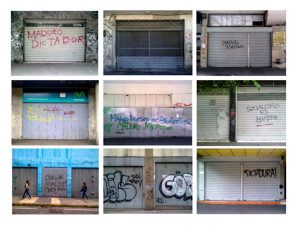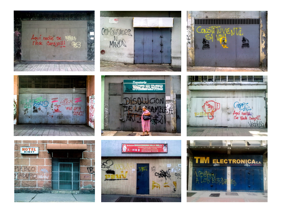 Tal vez sin saberlo, Azalia Licón lo acompaña en su conmovido trayecto con la serie Cerrado en Caracas, en la que la fotógrafa realiza un inventario de locales que decidieron mantener sus santamarías abajo, fortificar sus accesos y sellar sus salidas hasta clausurar su existencia. 10:30 am. 4:00pm. Algunos esperan mercancía, otros, tiempos mejores, evitan saqueos o la ruina se hizo entre ellos. La esperanza de la apertura se desvanece con el pasar de las horas pues vender y comprar son acciones contadas en una economía imposible.
