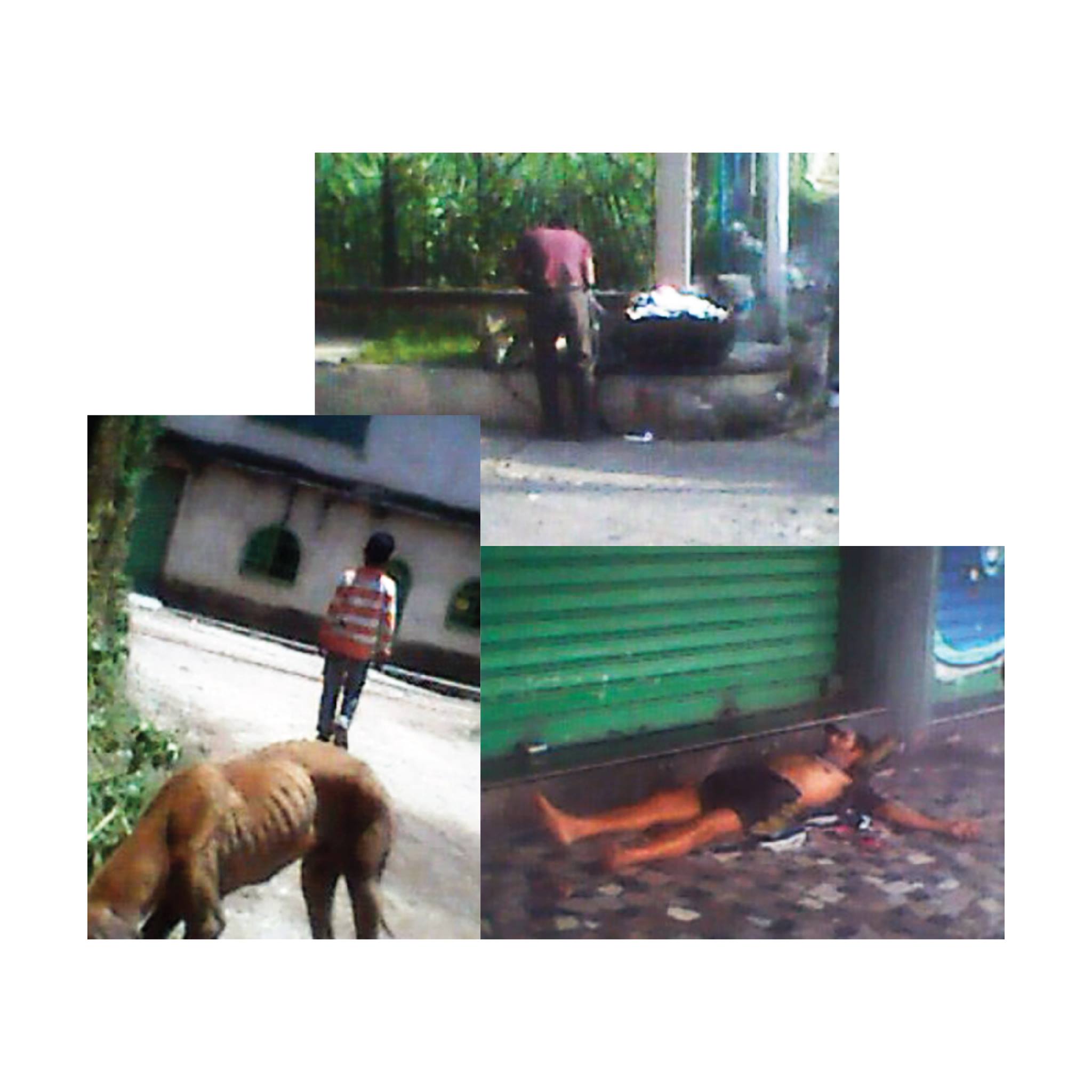 El camino continúa por pasajes de desidia y hambre, territorios inhóspitos que esbozan una idea hiperrealista de las formas de vida en el medioevo que hoy llamamos actualidad. Así Raúl Rodríguez registra sus paseos en medio de un juicio final perenne con VZLA LOW-TECH 2017, una serie metadocumental que, a partir de la precariedad de imágenes en baja resolución, retrata fragmentos de ciudades convertidas en espacios feudales saturados por la pobreza más abrumadora.