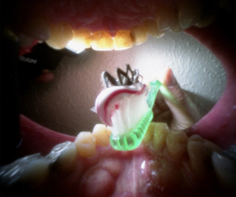 A Justin Quinnell no le basta con crear sus propias cámaras, necesita también nuevas perspectivas para sus fotografías, es por eso que en su proyecto ‘Mouthpiece’ el autor nos revela unas imágenes con un punto de vista único: desde el interior de su boca. A pesar de la singularísima visión enmarcada detrás de un conjunto de dientes, estas imágenes con olor y sabor nos muestran escenas comunes, nos hacen testigos de la rutina y cotidianidad del protagonista.