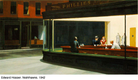 Resulta conmovedor a ratos, y esclarecedor siempre, este texto que nos revela las claves de la composición de una imagen magistral dentro de ese estilo documental subjetivo que se le atribuye a Hopper. Ilustrando los elementos esenciales de la forma de vida moderna de los norteamericanos y observando con atención el efecto final de soledad, meditación, y sutil pesimismo, a contra-corriente con unas décadas signadas por la euforia modernista. Ese sandwich que la mujer come a media noche en una sombría cafetería, rodeada de personajes inquietantes, se impone con mayor contundencia documental que muchas de las fotografías directas de la época.