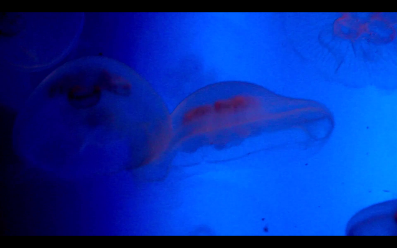 Como espectadora de Electric Dreams, ofrezco mi visión para investigar su efecto archivo. El cortometraje de Tovar presenta material que parece extraído de su memoria; a medida que narra, a través de títulos, la vida de Tesla, y ofrece reflexiones sobre la electricidad, ilustra su narración con imágenes recopiladas durante visitas a museos de ciencias, zoológicos, parques de diversiones, parques públicos y pistas de hielo. Estas imágenes son grabadas desde muy cerca, lo cual elimina el contexto/locación del encuadre (como medusas flotando dentro de un acuario, patos nadando en una laguna o relámpagos rasgando el cielo) y logra generar una sensación que Baron denomina “foundness” en el espectador: las imágenes no son fáciles de ubicar y tienen un carácter misterioso y un tanto genérico. Aquello que tiene foundness, la cualidad de haber sido encontrado, se percibe como si no hubiese sido creado en primera instancia para el film en el que se encuentra, incluso si no proviene de un archivo tradicional. El caso de Tovar tiene múltiples complicaciones: no sólo es difícil precisar si el material es de archivo o creado para esto, sino que la creación del corto en sí emana de la constitución de un archivo. Tovar experimenta con esa ambivalencia al incorporar material obviamente apropiado, como clips de Vertigo de Hitchcock y de la serie Ray of Discovery de Gerry Vassilatos.