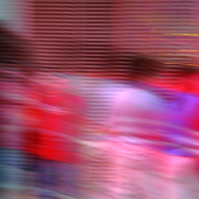 Abajo he colocado algunas imágenes de la serie “Desplazamientos” que ilustran efectivamente ese proceso dinámico: recorriendo Times Square al atardecer entre caminatas y cruces apresurados, Cemborain realiza un registro del movimiento de su propio cuerpo, el movimiento de las pantallas LED que caracterizan la cuadra turística, y el movimiento de los cuerpos a su alrededor. El desplazamiento de la cámara/cuerpo genera imágenes que se sitúan entre la abstracción pictórica y el glitch art.