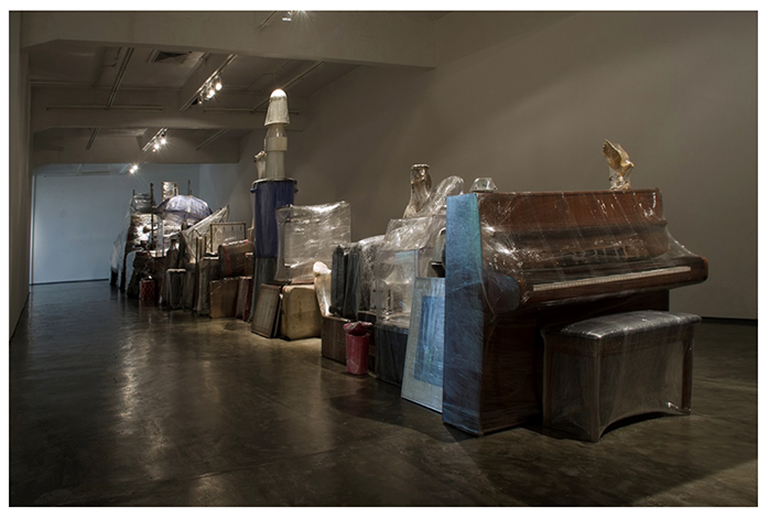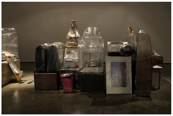 La ‘Crisálida’ funciona en su instalación como un gran contenedor de memoria. Allí, el artista ubica sus objetos, los de otros, algunos encontrados, él mismo, y todos aquellos que en sus diversos desplazamientos han tenido una significación. Todos están cuidadosamente protegidos, en espera de ser trasladados a algún lugar, detenidos, pero tampoco pueden ser usados, ya que se han convertido en memorias que no han llegado a ocupar una fisicidad espacial definida