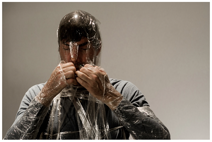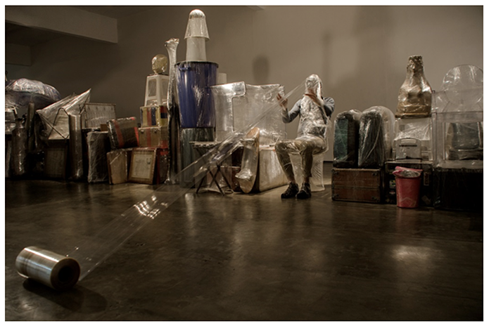 Img. 3: Pepe López ‘Crisálida’ (2017).Escape Room. Performance realizado por el artista dentro de la instalación. Fotografía: Julio Osorio. ESPACIO MONITOR. (Cortesía del artista)