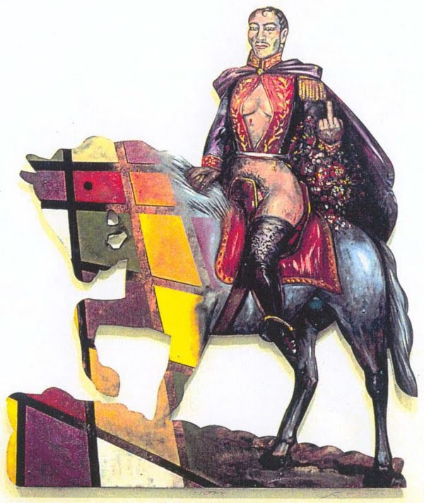En décadas recientes el arte latinoamericano ha jugado un papel importante en el cuestionamiento de estas fronteras. Un ejemplo es el “El Libertador Simón Bolívar” de Juan Domingo Dávila. En esta obra, el prócer es presentado con un cuerpo andrógino desnudo de la cintura hacia abajo y con unos senos que se insinúan detrás del corsé militar: “un Bolívar tetón y ligero de cascos, mostrando las nalgas morenas de la utopía latinoamericana”, dijo en aquel momento Pedro Lemebel. Evidentemente, Dávila no solo juega con los límites de la norma heterosexual, sino que los cruza con otra frontera infranqueable: la que separa lo sagrado de lo profano (o lo profanable). Como Alexander Apóstol en “Ensayando la postura nacional”, el Bolívar de Dávila deja ver la insostenible impostura del nacionalismo patriarcal.