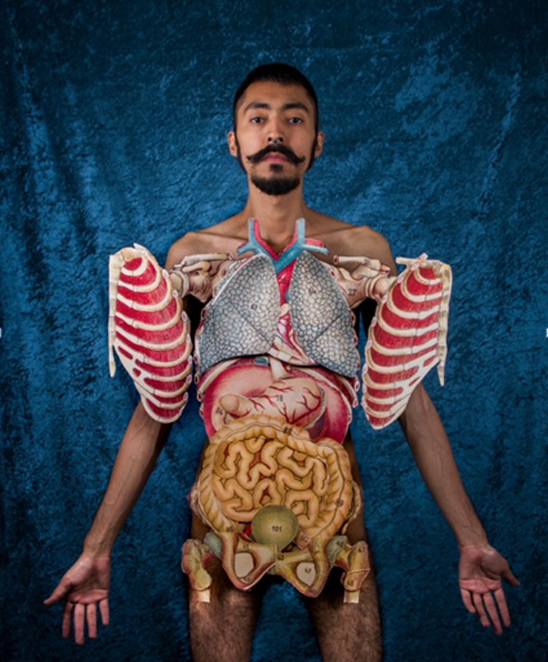 El cuerpo de Lechedevirgen Trimegisto es el soporte de una compleja narrativa no solo afectiva sino también moral sobre la significación de órganos, su función como vida, en tanto a lo humano de la pervivencia ya que es su anatomía la que exhibe tal cual un estudio médico simulado de la interioridad material orgánica que nos conforma. En este mismo registro del cuerpo como espacio de afectación de existencia finita es posible ubicar la obra Desentierro (Mantegna y Che) (2017) del dúo de artistas argentino Los Picoletos, conformado por Fabro Tranchida y Dante Litvak.