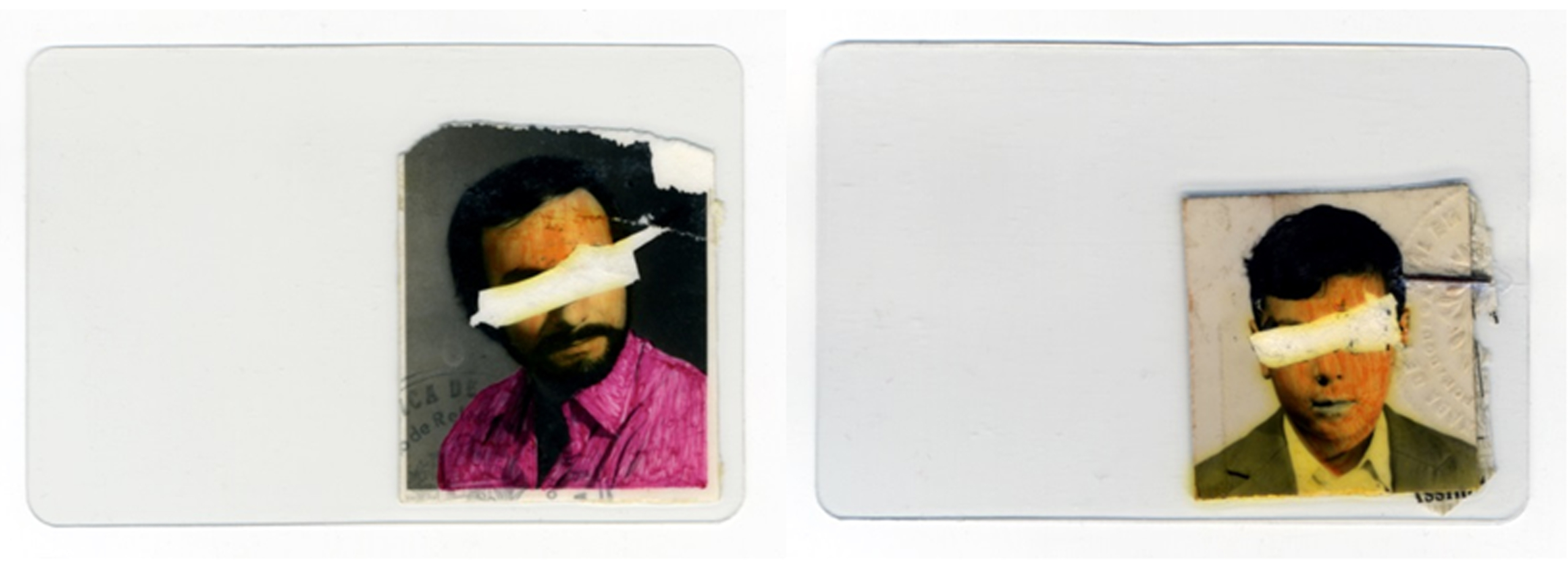 De allí, la simbolización de la distancia paterna presente en la obra El padre es una foto que se lleva puesta (2018) del artista venezolano Leonardo Almao. Obra en la que se apropia de diversas imágenes masculinas capturadas en sencillas fotografías de pasaporte. Imágenes en las que están claras su identidades sexuales: hombres, más un sus definiciones dentro de los roles familiares y menos aún de sus significantes paternos, pues el artistas ha borrado intencionadamente las miradas de los retratados, solo queda una presencia sin tiempo y sin arraigo.