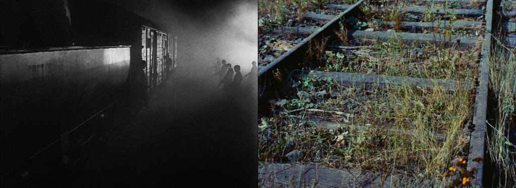 Resnais, nos sumerge en la miseria del alma a través de un viaje en tren, un recurso visual que nos permitirá adentrarnos hacía la noche, un espacio temporal, casi como una máquina “wellsiana”, mostrándonos los vagones repletos de anónimos en la vía hacía el final del camino. El paralelismo lo descifra a través del uso del color en presente transitando las mismas vías, de aquellos trenes que una y otra vez hicieron arder sus máquinas para descargar la carne que transportaban. Volver sobre la memoria, nos aclara Resnais, nos invita, nos dice, es una obligación.
