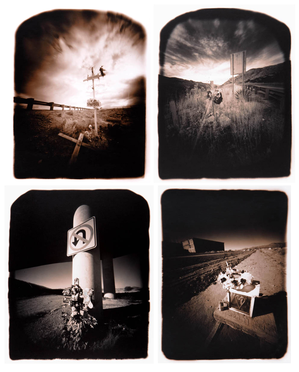 La colección total es de alrededor de 200 fotos de altares en el camino de EE.UU. a México. En esta serie la ubicación a través del GPS proporciona la información que se utiliza como título para las imágenes.