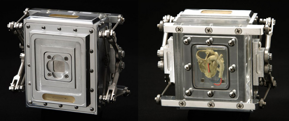 La cámara bautizada como “Corazón” está hecha de aluminio, titanio, acrílico, formaldehído e incorpora el corazón de un niño que murió al nacer, éste último fue donado por un galerista que lo encontró en un garaje que una vez había sido un laboratorio de anatomía que estuvo cerrado desde la década de 1940. El corazón se conserva en un compartimento sellado en la parte posterior de la cámara.