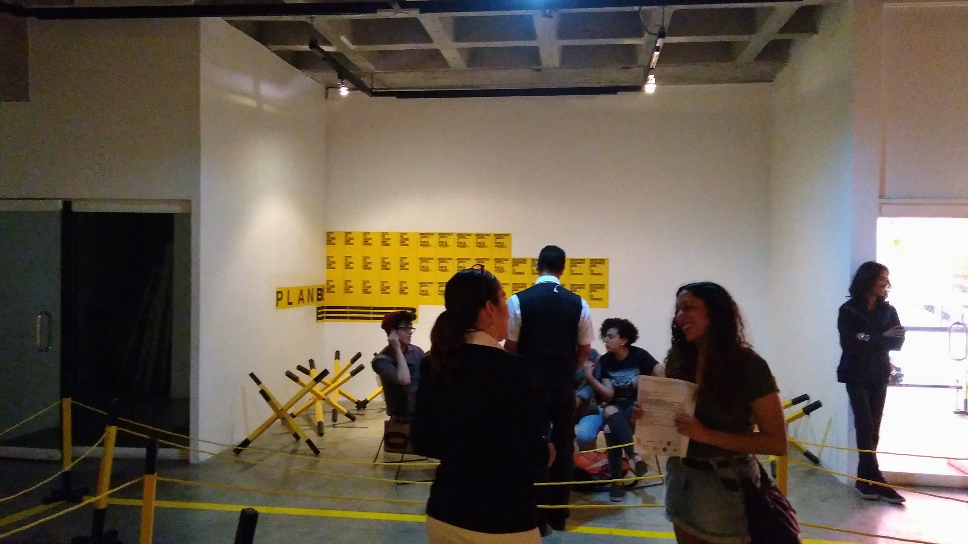 Cuando el acoso al que se encuentra sometido el espectador le permite unos breves momentos de reflexión estética este se percata de que se encuentra en una suerte de espectáculo circense, de algún tipo de teatro de calle, pero dentro de los espacios de una galería. El movimiento de los actores (porque no performers), sus dinámicas, su gestualidad, la misma manera en que la ficción en la que sumergen al espectador está tan bien articulada, tan cuidadosamente dispuesta, coloca a la obra más en el espacio de las artes escénicas que de las artes visuales —la unidad visual de las intervenciones artísticas de Plan B se la dan los elementos como cajas, estructuras de madera y separadores que son reutilizados en cada acción—. No quiere decir esto, empero, que el espacio para el accidente, para la improvisación y la retroalimentación con el espectador no existan; todo lo contrario, como en una performance, esto es la materia prima para los intérpretes y la pieza se permite mutar levemente, desarticularse y volver a su cauce dependiendo de las respuestas que obtiene. Por esta misma razón hablar de “espectadores” o “público” tampoco parece lo correcto. Esa separación deja de existir en cuanto se entra en la sala, el transeúnte se transforma de inmediato en otro participante más de la ficción y, sí juega bien y se permite ser absorbido por la situación, en actor o intérprete.